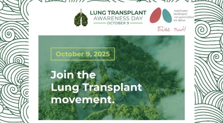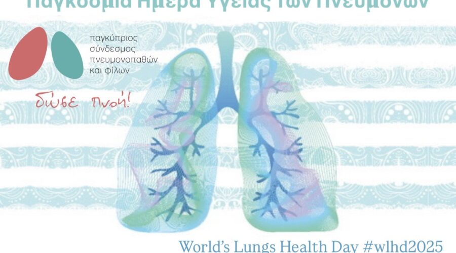 Με αφορμή την Παγκόσμια Ημέρα Υγείας των Πνευμόνων, ο Παγκύπριος Σύνδεσμος Πνευμονοπαθών και Φίλων ενώνει τη φωνή του με τη διεθνή κοινότητα, στέλνοντας ένα ισχυρό μήνυμα ευαισθητοποίησης, αλληλοενημέρωσης και δράσης για την υγεία των πνευμόνων μας! Οι πνεύμονες είναι η πηγή της ζωής μας. Κάθε...