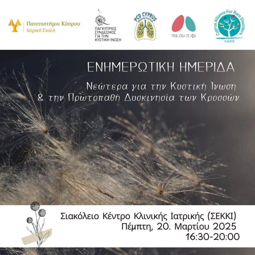 Ενημερωτική Ημερίδα με θέμα: «Νεότερα για την Κυστική Ίνωση & Πρωτοπαθή Δυσκινησία των Κροσσών»