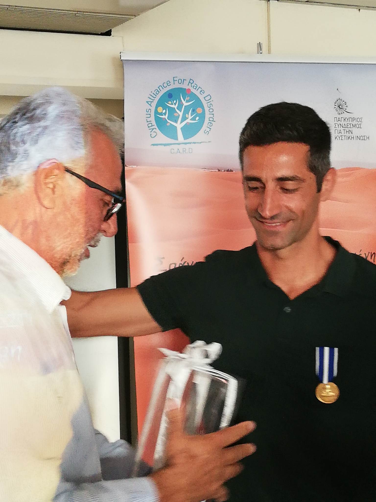Τιμητική εκδήλωση για τον υπεραθλητή και αρχιπυροσβέστη Ανδρέα Τζιακούρη, η οποία διοργανώθηκε από τη Παγκύπρια Συμμαχία Σπανίων Παθήσεων